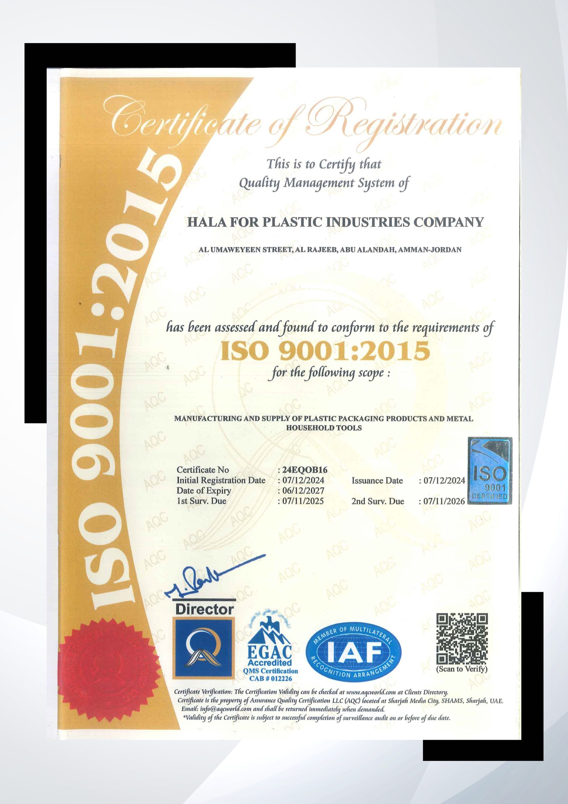 The ISO 9001:2015 certification demonstrates Castle for Packaging & Filling’s commitment to implementing a robust quality management system across all operations. This certification reflects our continuous improvement approach, customer satisfaction focus, and adherence to international quality standards. It ensures consistent product quality and effective process management, reinforcing trust with our clients and partners.